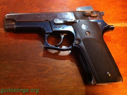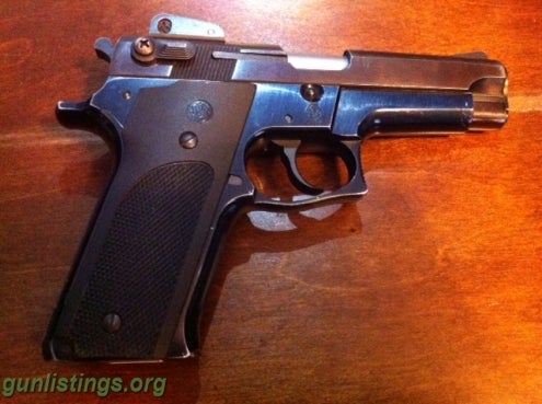 S&W Model 459 9mm. This one has adjustable sights, ambidextrous safety/Decocker, and one high capacity magazine. This firearm, and magazine are pre-ban.